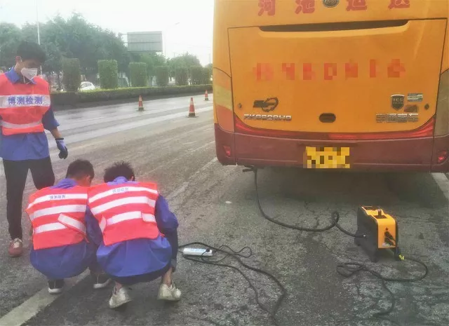 图2:博测检测的同事配合交警同志检测现场